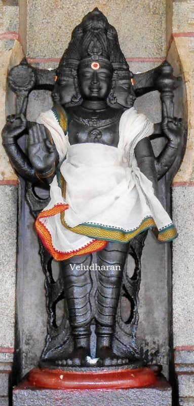 The sanctum sanctorum consists of sanctum, antarala and artha mandapam. There is a separate temple for Aadi Vinayagar. This Vinayagar is with human face ( மனித உருவில் ), instead of elephant head face.