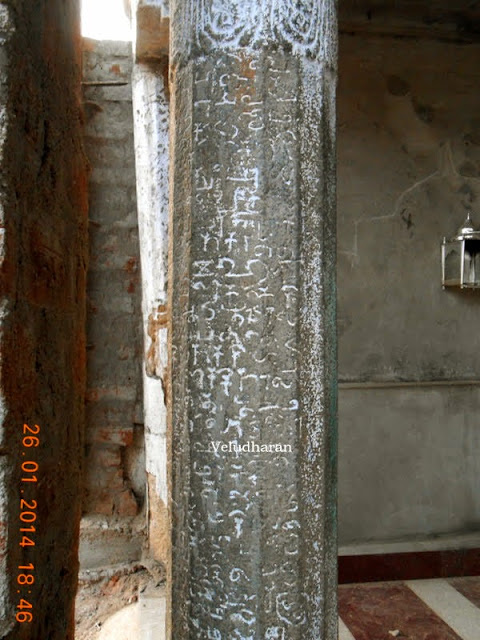 Tamil inscriptions was found around the left pillar on the south side entrance.
